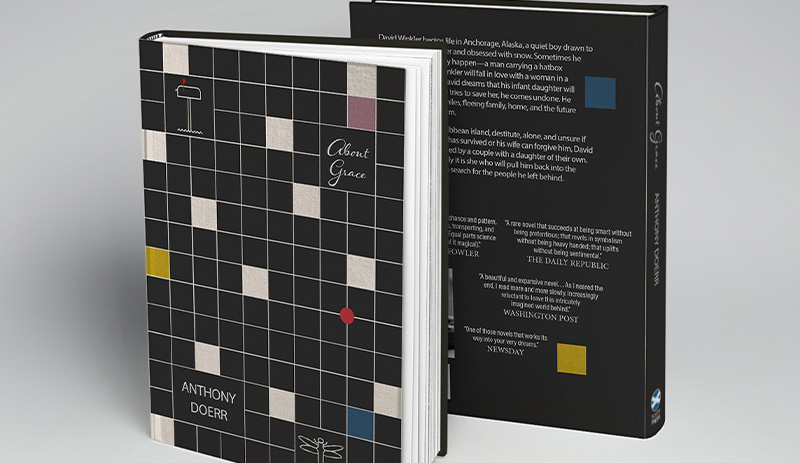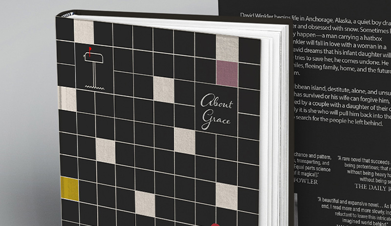 This book cover was designed for a class project in Intro to Design Software at Madison Area Technical College. The goal of this project was to re-create the cover for an existing book that we liked. I chose the book About Grace by Anthony Doerr, and the aim for this design was to evoke feelings of mystery, adventure, and emotional turmoil.