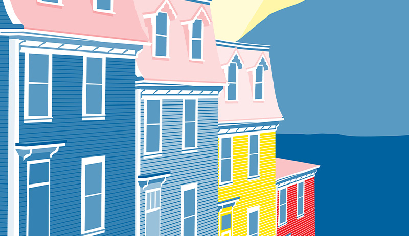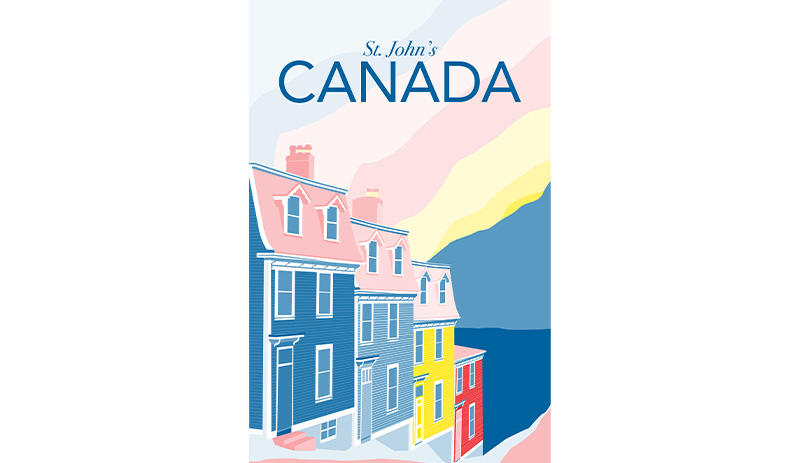 This poster was part of a class project in Intro to Design Software at Madison Area Technical College. Our charge was to design a travel poster completely in Illustrator, using only 3 colors (including tints). I chose this scene from St. Johns, Newfoundland, because I've always loved the way the colored houses pop next to the ocean. This piece is based off of a beautiful photograph taken by Elena Elisseeva.