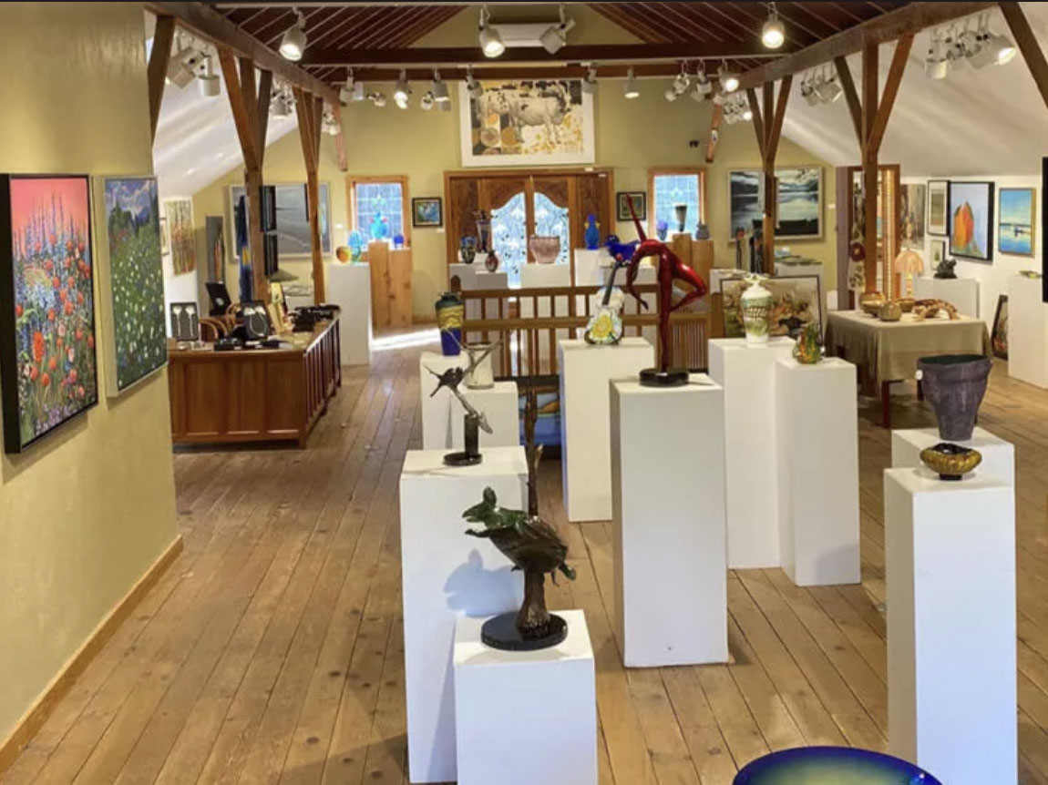Housed in a restored fruit barn built in 1918, the gallery presents monthly changing feature shows, along with general exhibits of work by over 150 artists. Paintings, sculpture, glass, clay, wood and jewelry are all represented.